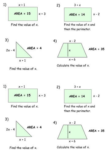 Forming And Solving Quadratic Equations From Shapes Factorising Teaching Resources